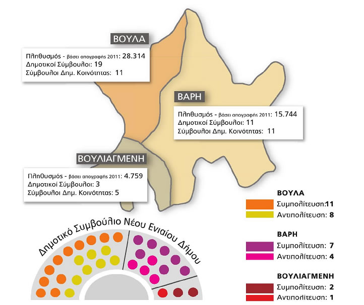 ► Η Δημοτική Ενότητα Βούλας συμμετέχει στο νέο Δημοτικό Συμβούλιο με 19 συμβούλους και εκπροσωπείται από 11 μελές Συμβούλιο Δημοτικής Κοινότητας.