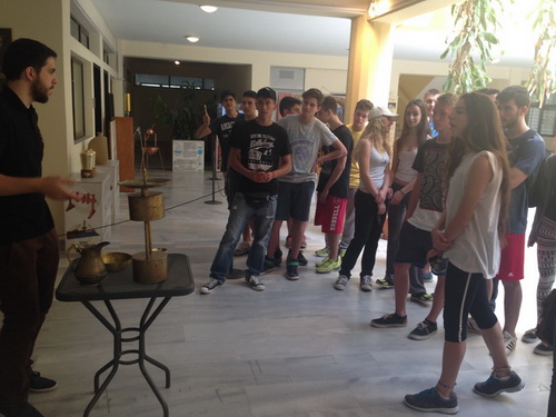 Την Παρασκευή 8 Μαΐου, η Λογοτεχνική Ομάδα του Λυκείου, υπό την καθοδήγηση των καθηγητών τους, κ. Βαρούχη, κα. Μανώλη και της διευθύντριας του Λυκείου κα. Μούτσου, μας ξενάγησε στον κόσμο του Αρχιμήδη, του Έλληνα μαθηματικού, φυσικού, μηχανικού, εφευρέτη, αστρονόμου. Τα μαθηματικά, οι μεγάλοι αριθμοί που τόσο αγαπούσε, οι εφευρέσεις του. Στη συνέχεια ο ιδρυτής του μουσείου αρχαίας Ελληνικής Τεχνολογίας κ. Κοτσανάς, με αφορμή ένα ταξίδι στο χρόνο, μας μύησε στα επιτεύγματα, στα άπειρα τεχνολογικά θαύματα, στους αυτοματισμούς, στις κατασκευές. Ακολούθησαν τα εγκαίνια της έκθεσης «Ο Αρχιμήδης και η εποχή του». Μικροί και μεγάλοι εντυπωσιάστηκαν από τις εφευρέσεις του Αρχιμήδη αλλά και από το πρώτο ρομπότ της αρχαιότητας, «τη θεραπαινίδα του Φίλωνα», το πρώτο laptop, δηλαδή το μηχανισμό των Αντικυθήρων και τον πρώτο κινηματογράφο, το μηχανισμό του Ήρωνα και άλλα πολλά
