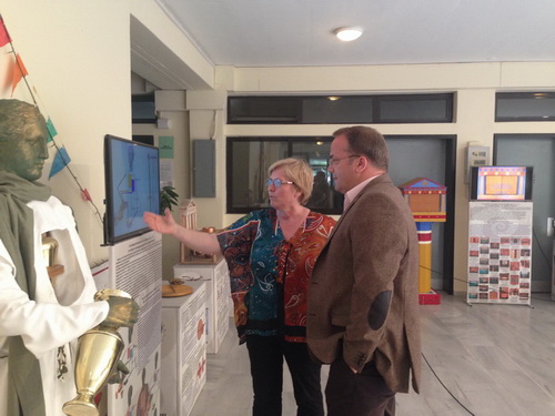 Στην έκθεση ξεναγήθηκε και ο Δήμαρχος Βάρης Βούλας Βουλιαγμένης Γρηγόρης Κωνσταντέλλος το απόγευμα του Σαββάτου 9 Μάιου, συνοδευόμενος από τον Πρόεδρο της Δημοτικής Επιτροπής Παιδείας Νίκο Βάση και την Πρόεδρο της Πρωτοβάθμιας Σχολικής Επιτροπής Δώρα Τριάντη, δηλώνοντας εντυπωσιασμένος όχι μόνο από τα εφευρήματα του μεγάλου επιστήμονα και εφευρέτη της Αρχαιότητας αλλά και από τον τρόπο που ο κ. Κοτσανάς τα παρουσίασε μέσω των σύγχρονων κατασκευών που δημιούργησε ως εκθέματα για το μουσείο.
