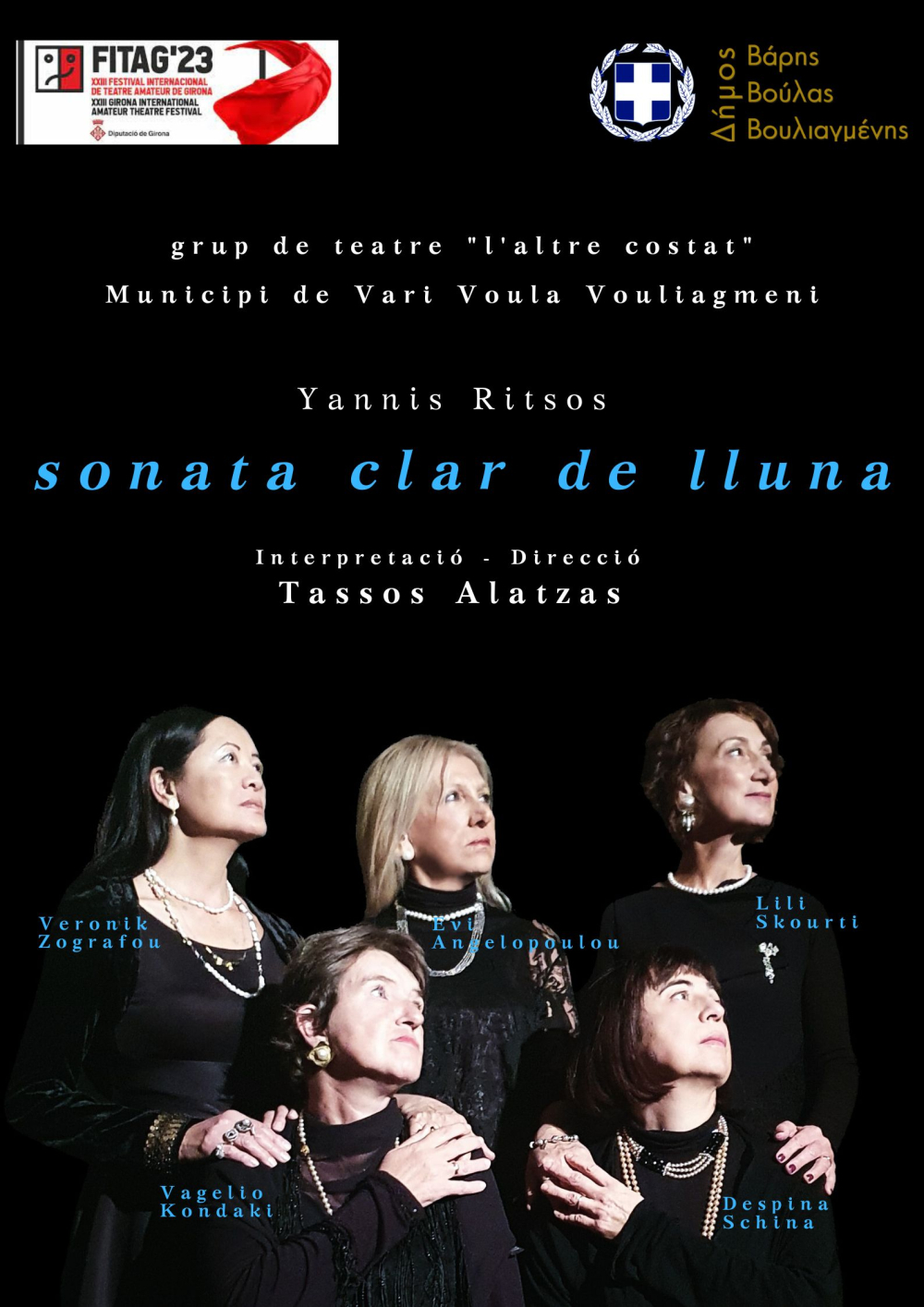 Η θεατρική ομάδα «άλλη πλευρά» του Δήμου Βάρης Βούλας Βουλιαγμένης επιλέχθηκε και συμμετείχε στο Διεθνές Φεστιβάλ Ερασιτεχνικού Θεάτρου της Χιρόνας / Girona International Amateur Theatre Festival (FITAG), στην Ισπανία. Η συμμετοχή της Ερασιτεχνικής Θεατρικής Ομάδας του Δήμου με τη «Σονάτα του Σεληνόφωτος» στο φεστιβάλ της Χιρόνας αποτελεί μια σπουδαία διάκριση, που σηματοδοτεί το σημαντικό πολιτιστικό έργο πού γίνεται στον Δήμο Βάρης Βούλας Βουλιαγμένης.