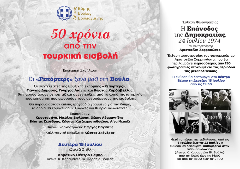 Οι «Ρεπόρτερς» στη Βούλα - Εκδήλωση για τα 50 χρόνια από την τουρκική εισβολή στην Κύπρο στο Δήμο Βάρης Βούλας Βουλιαγμένης Featured
