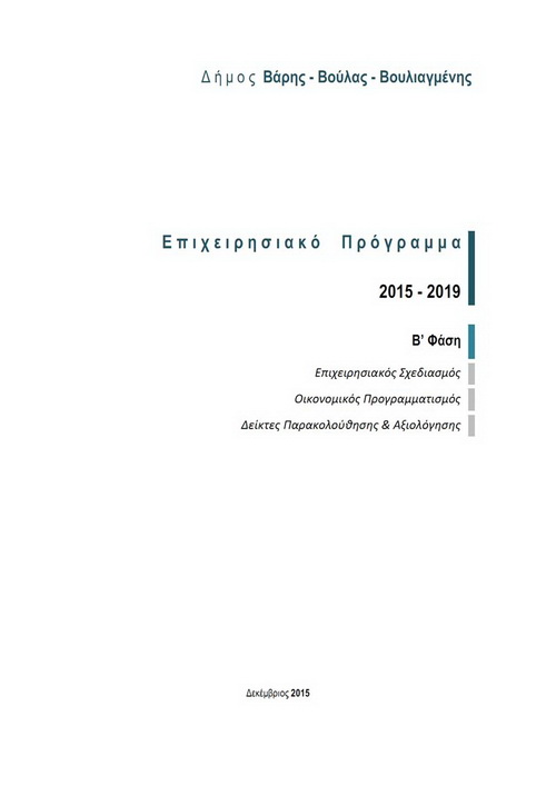 Ψηφίστηκε κατά πλειοψηφία, τη Δευτέρα 21 Δεκεμβρίου, από το Δημοτικό Συμβούλιο Βάρης Βούλας Βουλιαγμένης η Β’ φάση του Επιχειρησιακού Σχεδιασμού του Δήμου για την πενταετία 2015 – 2019, που αφορά το σύνολο των έργων που έχει στόχο να υλοποιήσει ο Δήμος κατά την τρέχουσα πενταετία.