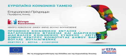 Η έναρξη της λειτουργίας του Κέντρου Κοινότητας, μιας νέας κοινωνικής δομής στον Δήμο Βάρης Βούλας Βουλιαγμένης, έγινε στις 15 Σεπτεμβρίου 2017 στο πλαίσιο του Ε.Π. «ΑΤΤΙΚΗ 2014-20», η οποία συγχρηματοδοτείται από το ΕΣΠΑ 2014-2020 και το ΕΚΤ.